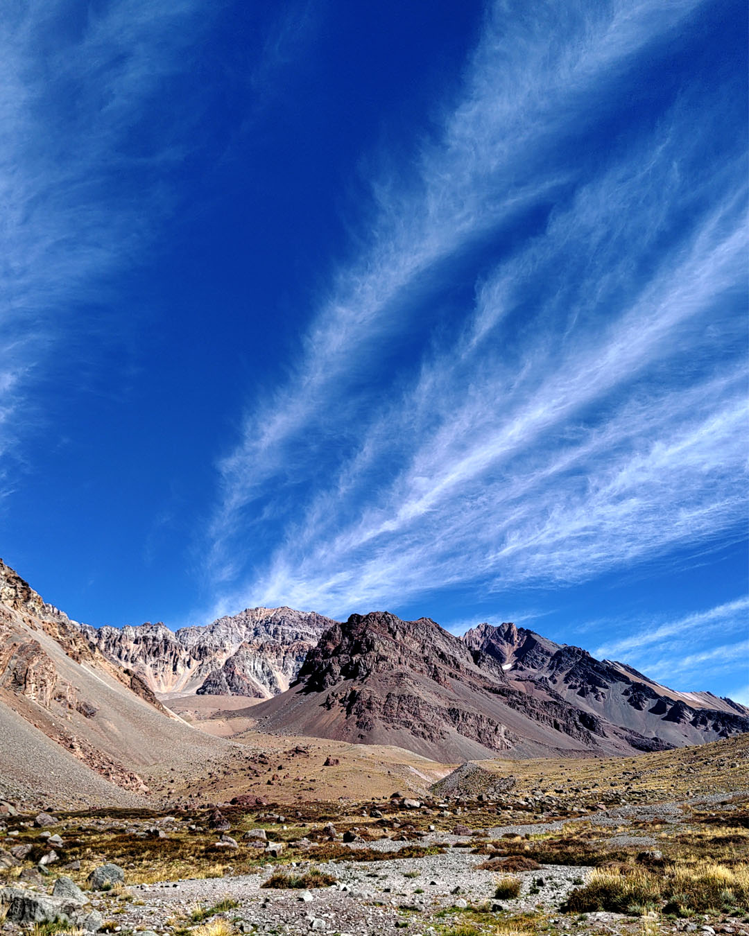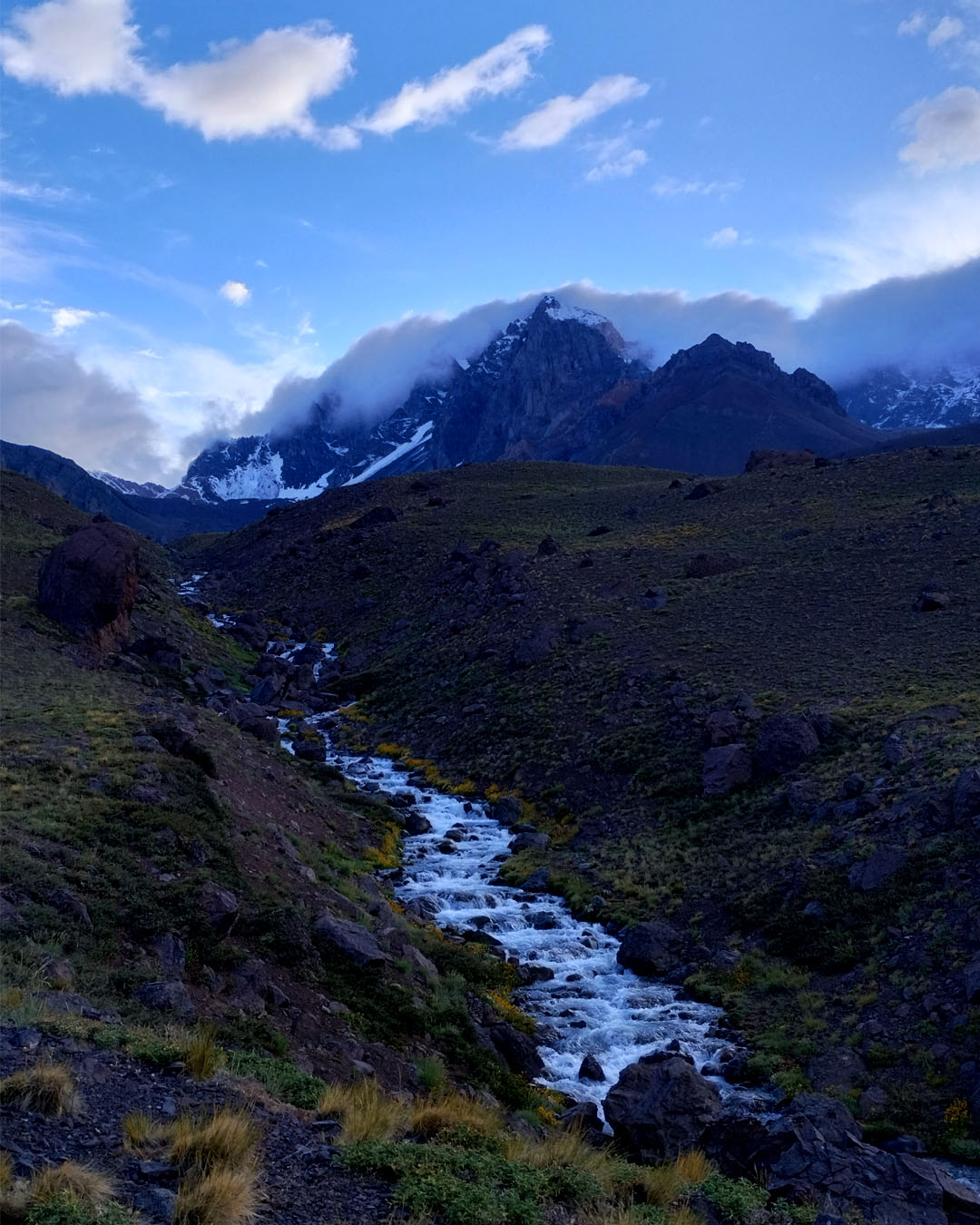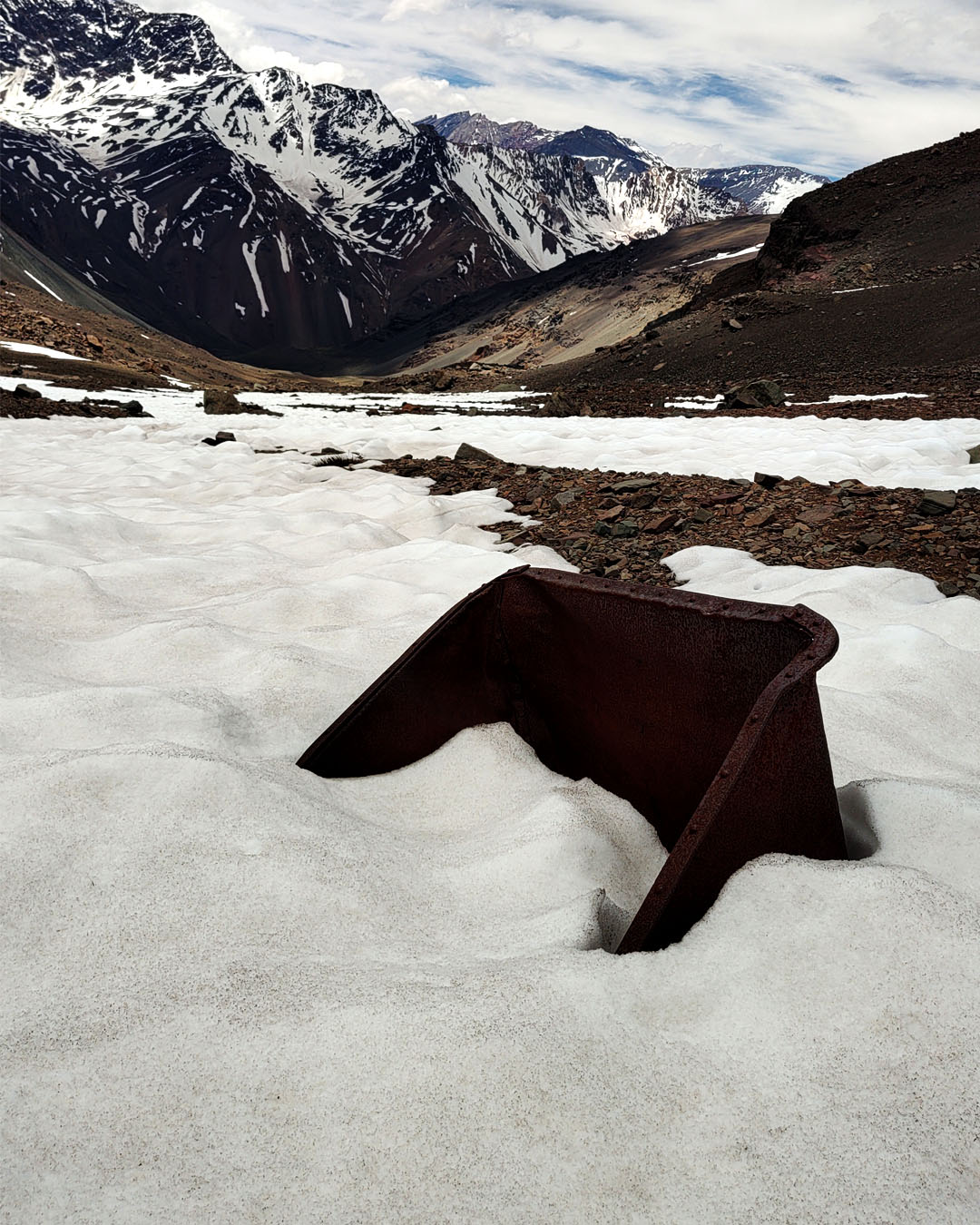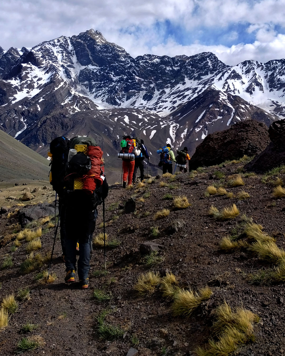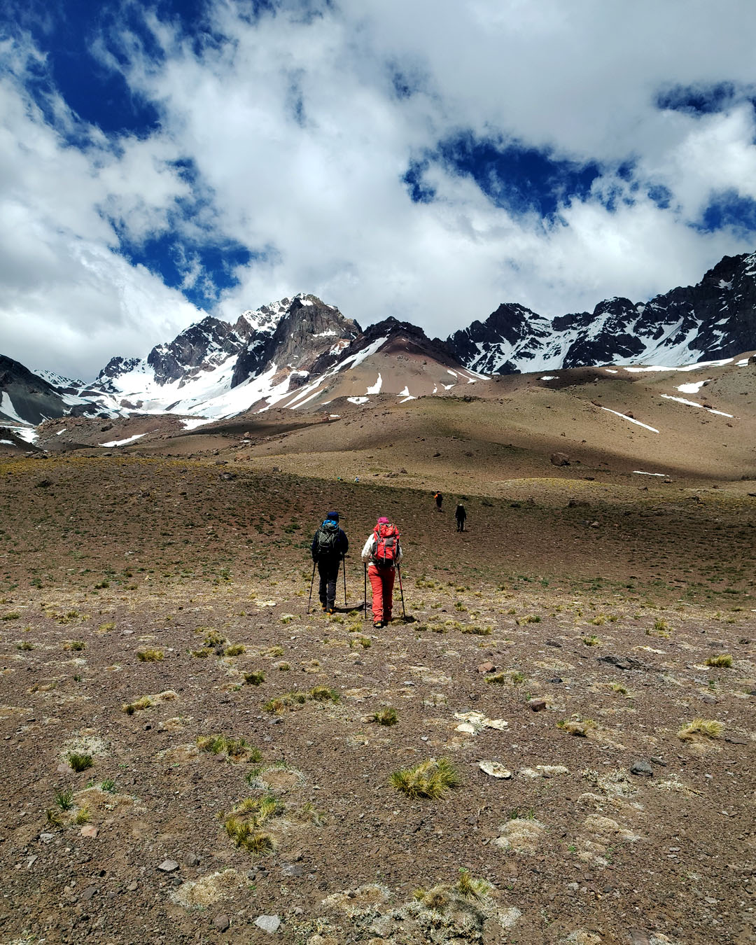 La expedición se desarrolla en la Quebrada de los Gemelos, un entorno de alta montaña rodeado de cumbres imponentes, valles profundos y paisajes áridos, donde la sensación de aislamiento y amplitud es permanente. Desde los primeros pasos, el terreno invita a una conexión directa con la montaña.